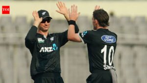 New Zealand cruised to a 26-run victory over Bangladesh on Friday to take a 1-0 lead in the first ODI of the three-match series.In hot weather, New Zealand’s pace attack proved decisive, beating Bangladesh by 221 runs in 48.3 overs after setting a target of 248 on a slow surface. The trio of Blair Tickner, Nathan Smith and Will O’Rourke shared eight wickets to break up the chase with sustained pressure.Push boundaries with our YouTube channel. Subscribe now!Earlier, New Zealand, who opted to bat, posted 247/8, built around Henry Nicholls’ 68 and Dean Foxcroft’s brisk 59. After losing an early wicket, Nicholls steadied the innings with a score of 73, with Will Young contributing 30 runs. Bangladesh pacer Shoriful Islam impressed in his return, finishing with 2/27 in a tense match.Bangladesh’s chase got off to a poor start as they fell to 21/2, but a 93-run stand between Saif Hasan (57) and Liton Das (46) revived hopes. But O’Rourke’s breakaway removed Saif, triggering a collapse in the crucial stages.A brief period of resistance ensued as Towhid Hridoy and Afif Hossain pieced together a 52-run stand, but left-arm spinner Jayden Lennox broke up the partnership, leaving Bangladesh with too much to do in the final overs.Tickner had a shaky start but came back to create a match-winner, taking four wickets in his final over to clear the tail. Smith also played a crucial role early on, taking two consecutive deliveries and finishing with three wickets.Ultimately, New Zealand’s stellar performance with bat and ball ensured a strong start to the series, while Bangladesh still have a lot to iron out before the must-win second ODI match.