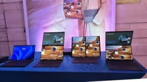 Zenbook DUO comes with a dual-screen setup with two 14-inch OLED touch displays. It supports multiple usage modes for different work settings. The laptop is powered by Intel Core Ultra 7 processor and is designed for multitasking across screens. Battery life is rated up to 32 hours. Laptop prices start at Rs. India is 299,990.