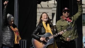 In addition to Springsteen, other notable figures include Jane Fonda, Maggie Rogers and Joan Baez. U.S. Senator Bernie Sanders also addressed the crowd on democratic issues.