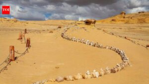 Fossilized whale bones are exposed to the sun in Wadi Al-Hitan (also known as the “Valley of the Whales”) in the heart of the Egyptian desert. Their vertebrae stretch in long, curved lines across the sand, as if the water has just receded. How did these ocean giants survive in this extremely dry place on Earth, home to hundreds of marine fossils dating back 40 million years? Deserts that appear dry today were once shallow seas where marine life thrived. Unlike modern whales, some of these ancient species had small but unique hind limbs.These fossils carry one of the most important stories of evolution: Their anatomy reveals the gradual transformation from land mammals to ocean giants.Located in the arid and windswept Fayoum region, its rocks preserve evidence of a thriving marine ecosystem.