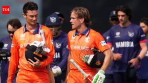 After reducing Namibia to 156 for 8, Pastelid led the Netherlands home with a 12-ball win. Delide remained unbeaten with 72 off 48 balls.Delide has received strong support from all parties Colin AckermanHe scored 32 goals from 28 goals and Michael Levitt scored 28 goals from 15 goals in the opener. His 70-run partnership with Ackerman for the third wicket proved to be a game-changing partnership.Meanwhile, Namibia, inspired by the Netherlands, also started a spin attack and found immediate success, with Max O’Dowd being caught by the Namibia skipper in the third over off a faster back delivery by left-arm orthodox Bernard Scholtz.Left-arm pacer Reuben Troupelmann dismissed Michael Levitt on the third ball of the sixth over, but the 22-year-old batsman did enough damage with an innings of 28 off 15 balls as the Netherlands ended the powerplay at 50 for 2.Ackermann was knocked out in the 13th hole by Steenkamp in the 10th hole. The Netherlands still needed 80 runs in the final half of the innings and Ackerman’s wicket would put pressure on them, but Steenkamp was unable to take a regular catch at deep square leg.Namibia got off to a slow start after taking the field. Louren Steenkamp and Jan Frylinck opened the innings, with Netherlands starting with deputy Aryan Dutt. The lanky spinner had Steenkamp stranded midway on the track and the right-handed batsman was stumped by Netherlands captain Scott Edwards in the third over.The Dutch bowlers made the most of the conditions, hitting four spins in the powerplay, while the Namibia Eagles managed just 40 runs in the first six overs, hitting just three boundaries and four sixes.Jan Frylinck’s innings never clicked and he ended summarily when he was caught by Edwards Logan VanBeekNamibia’s bowling scored 65 runs off 2 balls after 10 overs.It was not until captain Gerhard Erasmus joined forces with left-hander Jan Nicol Loftie-Eaton in the midfield that Namibia’s run rate improved and they scored 29 points in the next two rounds, taking their total score in 12 rounds to 94 points.However, Erasmus, who scored 18 goals with 9 goals, was stuck in midfield in the 13th round. Loftie-Eaton’s 42 off 38 balls was followed by Namibia’s defeat of 107 for 4 in the 15th over.Namibia lost Reuben Troupelmann’s batting ability in the final innings, with Dylan Letcher’s poor call resulting in Troupelmann being dismissed for 9 runs.