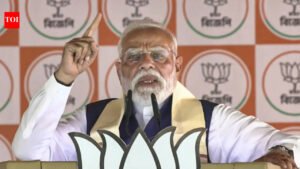 In a screenshot of a video posted on April 26, 2026, Prime Minister Narendra Modi addresses a public meeting for…